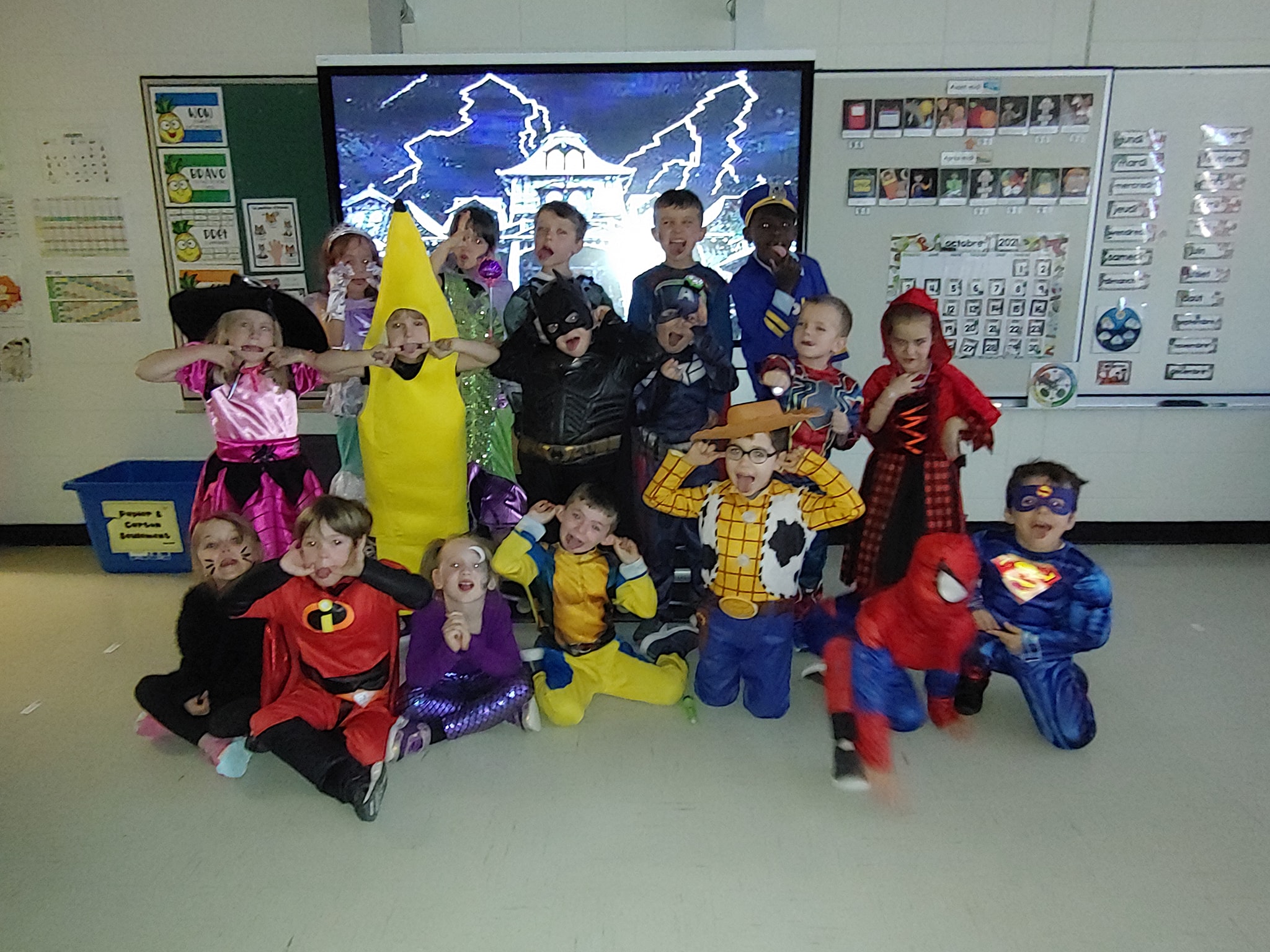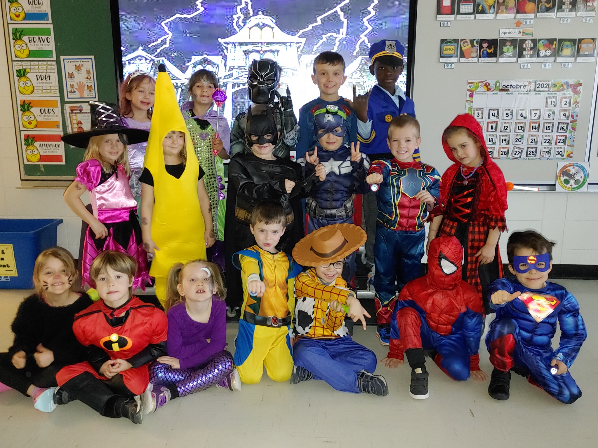 Le 29 octobre dernier, des sorcières, des vampires, des monstres, des super-héros et plusieurs autres personnages fantastiques sont venus faire une petite visite l’école L’Éveil. Nous avons eu la chance de vivre des activités spéciales lors de cette journée animées. Les élèves ont pu notamment participer à un bingo et ils sont repartis avec des friandises. Nous tenons à remercier les membres du personnel ainsi que les élèves pour leur belle participation.